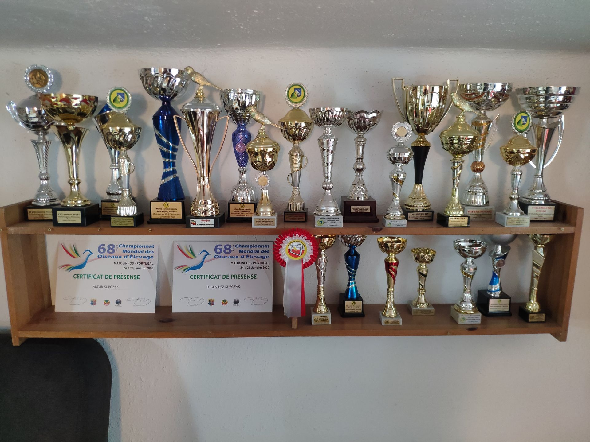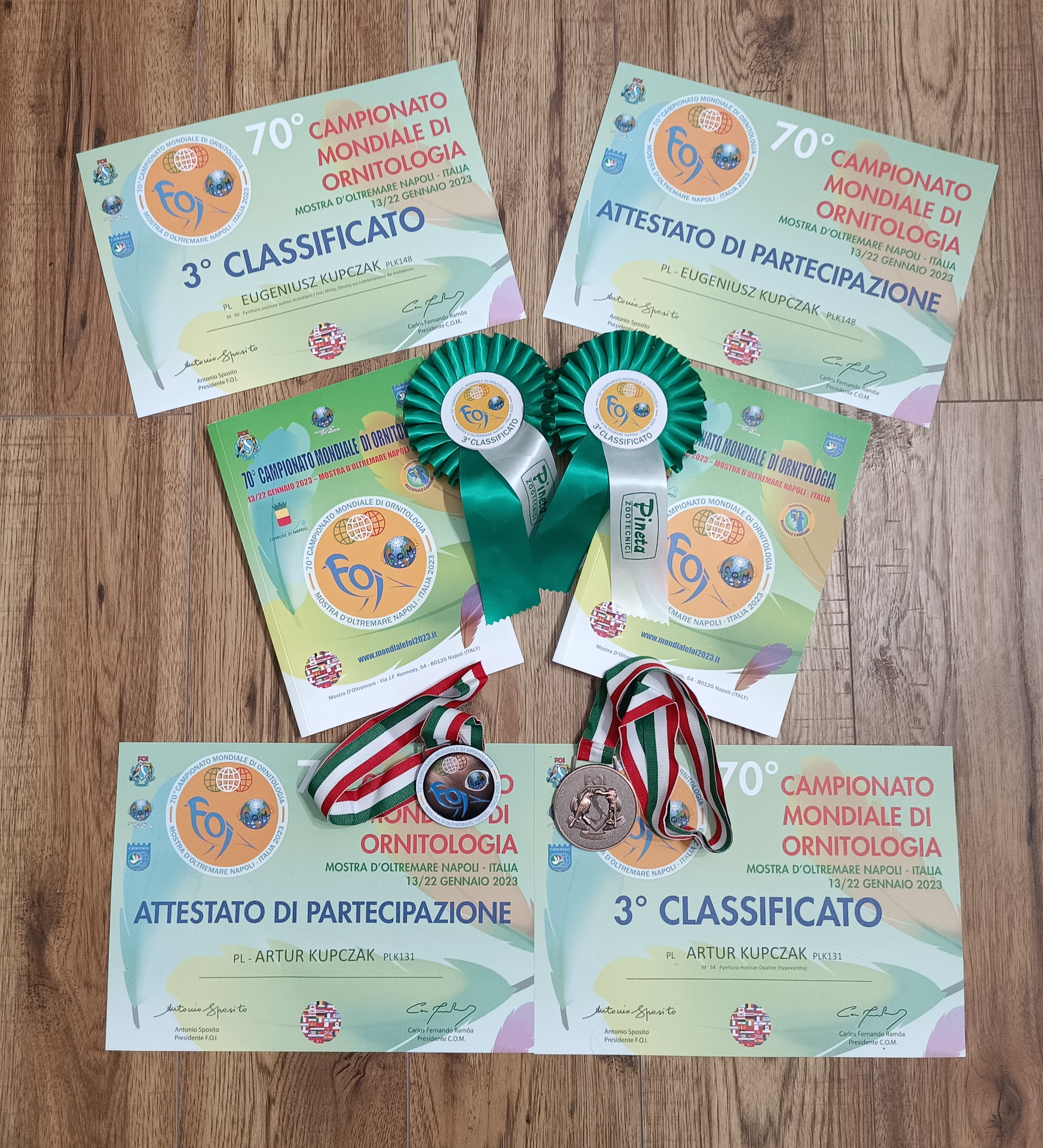 ptaków z całego świata. W 2023 roku po przerwie spowodowanej COVID-19 na Mistrzostwach Świata w Neapolu zdobyliśmy dwa brązowe medale, z kolei na Mistrzostwach Świata w 2024 roku w Hiszpańskiej Talavera De La Reina zdobyliśmy swoje pierwsze Mistrzostwo Świata. Prócz Mistrzostwa zdobyliśmy dwa srebrne i jeden brązowy medal. W 2019 roku uczestniczyliśmy również w Międzynarodowej Wystawie w Włoskiej Cesenie.
